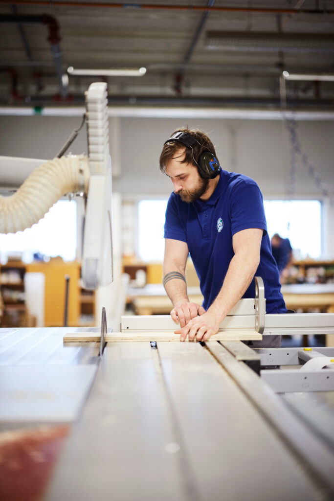 En central del af forretningsområdet er vores eget værksted, hvor vi producerer montrer, sokler, vægge, scenografier og specialbyggede konstruktioner til udstillinger. Ved at kombinere håndværk med teknisk viden og projektledelse kan vi tage ansvar for både større helheder og mere komplekse detaljer.